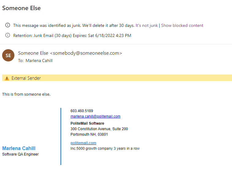 Hello! This is a great question. Are the avatar showing, email address being trusted, and it being shown as an internal sender important to you? While PoliteMail does support changing the from to an alternate option, the global address directory will pull in the data for internal emails and show the recipient that information. Here's a side by side of what the difference would look like. This is the knowledgebase article we have on this as well.