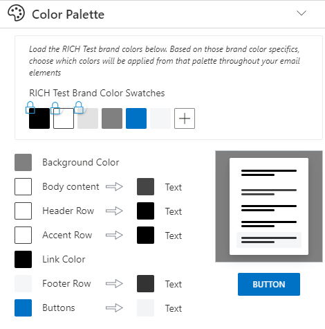 In your color picker for text/background, it would be fantastic if you could add a row of themed colors that matches the brand approved guidelines of the companies that would usually have a fixed set of colors to select from down to the RGB/HEX code. There is currently a row of shades of black. If you can add it there, that would be most convenient for users to select while building their corporate emails.